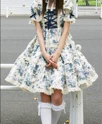 - Sweet Lolita - Já ta dito tudo é um estilo super fofo que usa cores de tons em rosa,verde mas de preferencia um verde claro,azul bebê ,amarelo claro,Pêssego.Lolitas quando utiliza estampas são bem pequenas e também considerada (Botinha),frutas,flores e até animais